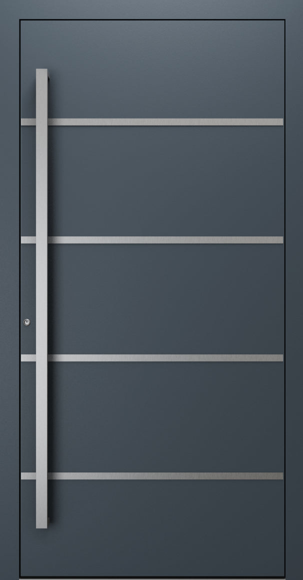 With its modern dark grey finish and minimalist Design 02 detailing, this door complements contemporary, modern, and transitional architecture, making it perfect for homeowners seeking a stylish, secure, and durable entrance.